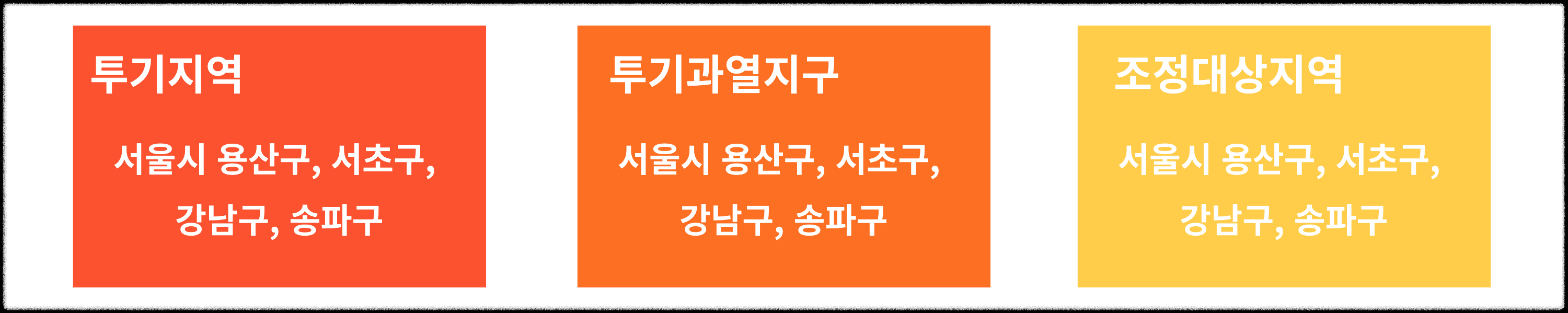 - 투기지역, 투기과열지구, 조정대상지역을 말합니다.