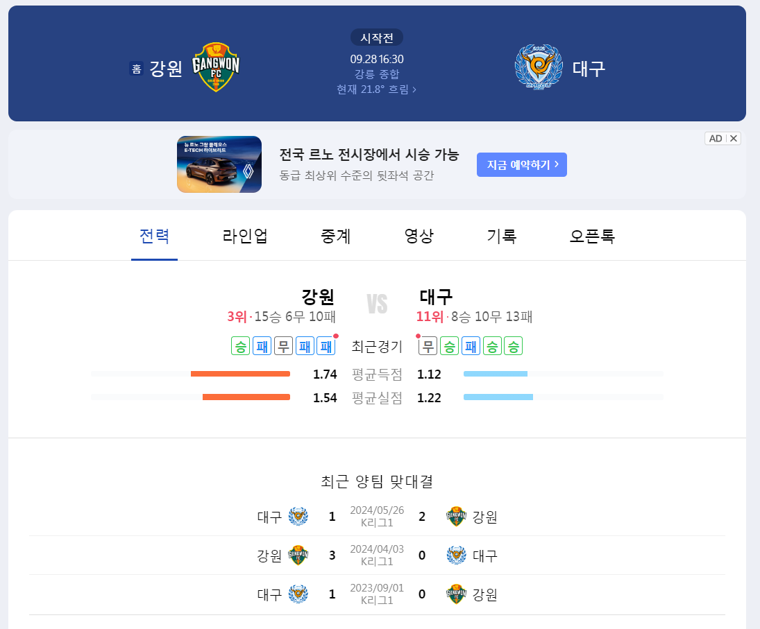 | 2024시즌 가을 축구 시작 32R 프리뷰 [김천 VS 광주] (11) | 2024.09.27 |