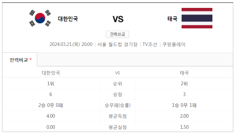 현재 C조 선두를 달리고 있는 대한민국 대표팀은 오늘 경기에서도 무난한 승리가 예상됩니다. 태국은 1승 1패로 조 2위를 차지하고 있는데 지난 중국전에서 1:2로 패하면서 감독을 교체하며 분위기 반전을 노리고 있습니다. 직전 감독을 보좌하는 테크니컬 디렉터였던 이시이 마사 타다 태국 감독은 일본 출신으로 일본 J리그와 태국리그에서 다수 감독 경력을 쌓아온 인물입니다. 일본 축구를 접목하여 어떤 경기력으로 나설지 오늘 경기가 기대됩니다.